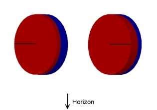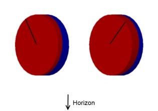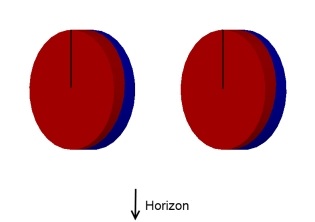 This effect is responsible for the shifting of the observed planetary disk in the different wavelengths. The planetary disk in the blue light is shifted to higher positions and the disk in the red light is shifted to lower positions compared to the other wavelength. So the observer would see a blue rim in the upper part of the planetary disk and a red rim in the lower part. Since in a Kepler telescope the image is inverted, the observer sees the upper part of the planet with a red rim and the lower part with a blue rim.
